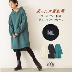 ワンピース レディース ワンピ ひざ丈 ミモレ丈 レイヤード 重ね着 裏起毛 フード スリット ロゴ「メール便不可」「30」