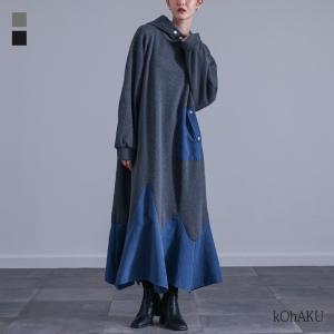 ワンピース 裏シャギー あったか レディース パーカーワンピ ロング 長袖 フード付き フレア 異素材 アシンメトリー 秋 冬「送料無料」「メール便不可」「30」