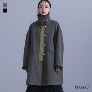 「送料無料」コート レディース アウター スタンドカラー ボア タック Aライン ミドルコート 裏地付き「メール便不可」「50」