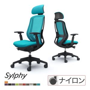 オカムラ シルフィー オフィスチェア エクストラハイバック 可動ヘッドレスト 可動肘 背メッシュ ブラックボディ 樹脂脚 ランバー付 sylphy C68EXS