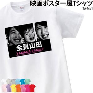 Tシャツ 半袖 映画ポスター風 写真 切り抜き おもしろ シュール モノクロ オリジナル オーダーメイド ペット ギフト 文字入れ 卒業記念 成人式 TA-MV1 送料無料