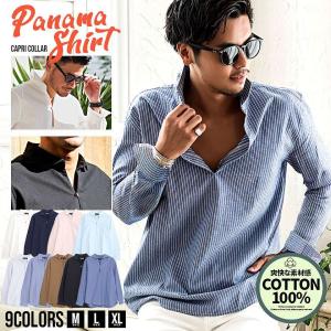 カジュアルシャツ メンズ 50代 ?60 綿 長袖 パナマ織り 涼しい 立ち襟 無地 ストライプ 白 黒 40代 50代 ちょいワルファッション50 春 夏