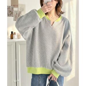 tシャツ 「予約受付中」今っぽさは、色でつくる。オーバーサイズ配色ワッフルプルオーバー レディース