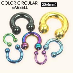 サーキュラー バーベル カラー 2G(6mm) ボール 黒 ピンク 青 ゴールド アクア 緑 レインボー ボディピアス ボディーピアス 定番 CBR 2ゲージ【メール便対応】┃