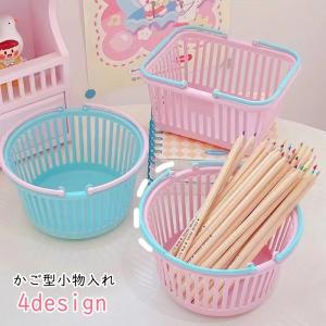 小物入れ 卓上収納 収納雑貨 収納グッズ スクエア 丸形 ラウンド 四角形 買い物かご型 持ち手付き 無地 ピンク ブルー シンプル かわいい キュー