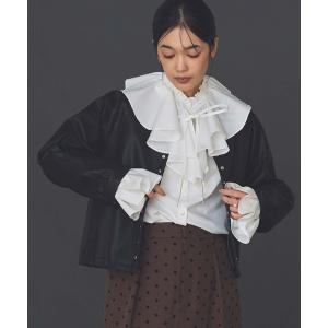 コート アウター LUレザークルーネックジャケット レディース