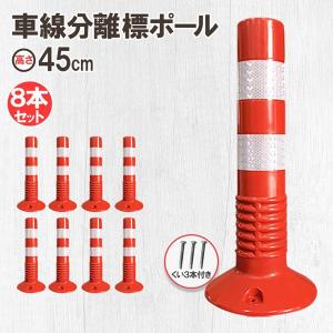 車線分離標 車線分離標ポール 45cm 8本セット コーンポスト 視線誘導標 ガードポール 反射 ポスト 駐車場 目印 車止め 通行止め 区切り