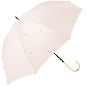 ビコーズ PUプティリボン ピンク リボン柄 傘 レディース 長傘 雨傘 日傘 UVカット99 以上 遮光 晴雨兼用 防水 はっ水加工 手開きタイプ