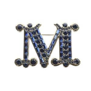 マックスマーラ MAX MARA Mロゴ ビジュー ブローチ ゴールド色 青 ブルー /SR17 レディース