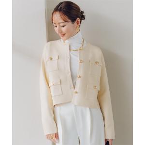 ジャケット ノーカラージャケット ゴールド釦ニットカーディガン/ジャケット レディース