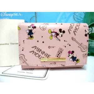 送料無料 サマンサタバサ 限定 ミッキー ミニー 音符 チャーム付 牛革 三つ折り財布 ミニ財布 折財布 ピンク 新品 証明書付 ギフト包装無料 ディズニー