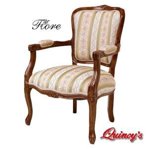 【Y-1114】フィオーレ ロココ調仕様 サロンチェアー(ブラウン)ストライプグリーン