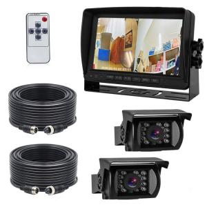 AHDデジタルバックカメラ2個搭載 車載レコーダー 12/24V車 トラック バス 録画 20Mケーブル2本付 上書きリモコン付 7インチDVR 2分割表示 AHD70DVR2SET