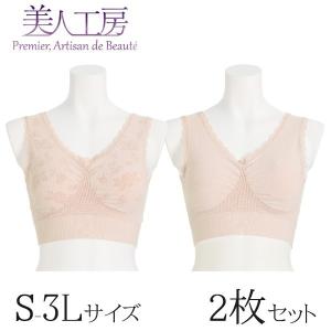 ノンワイヤー ブラジャー 2枚セット ワイヤーなし S M L LL 3L ベージュ ピンク ブルー 青 ノンワイヤー 下着 通販 レディース 美人工房 にこにこコットン綿混