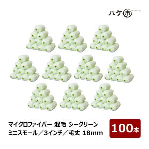 ミニスモールローラー マイクロファイバー 混毛 シーグリーン 毛丈 18mm 3インチ 100本セット | ペイントローラー ミニコロ 針金ローラー 塗装 内装 まとめ買い
