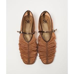パンプス 「SY」シースルーギャザーベルトフラット10↑