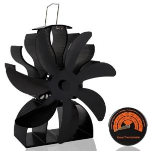 ストーブファン エコファン 灯油ストーブファン 薪ストーブ 省エネ 電源不要 空気循環 小型 暖炉用品 専用温度計付き(ブラック、6つ羽根)