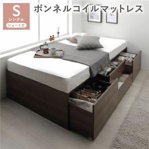 ヘッドレス チェスト ベッド ショート丈シングル ブラウン ボンネルコイルマットレス付 引き出し 収納ベッド