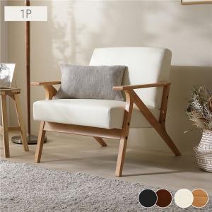 木肘 合皮 ソファ 1人掛け クリームアイボリー ナチュラル脚 天然木 合成皮革 脚付き 肘付 ソファー リビング ダイニング インテリア家具