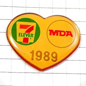 ピンバッジ・セブンイレブン赤いハート型1989大好き 7ELEVEN SEVEN-ELEVEN◆フランス限定ピンズ◆レアなヴィンテージものピンバッチ