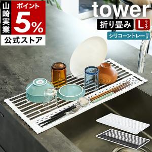 特典付[ 折り畳み水切り タワー シリコーントレー付き L ]山崎実業 tower シリコン シンク上 折りたたみ 水切りマット スリム キッチン yamazaki 5054 5055