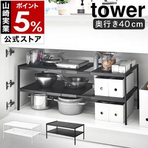特典付[ 伸縮シンク下ラック 2段 タワー D40 ]山崎実業 tower シンク下収納 すきま収納 隙間収納 キッチン収納 キッチンラック 洗面台下 収納 棚 4950 4951