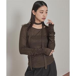 tシャツ タイ付きシャーリングシアートップス レディース