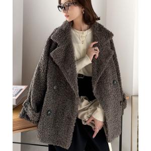 ステンカラーコート コート ふんわり包まれる贅沢な季節感。スタンドカラープードルボアダブルコート レディース