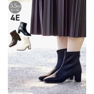 ブーツ 靴 ゆったり 幅広 4E ワイド 大きいサイズ ストレッチ あったか 防寒 リングファスナー バックファスナー シンプル ショートブーツ (アクアカルダ)