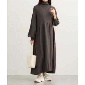 ワンピース ウエスト切替ボリューム袖ニットワンピース