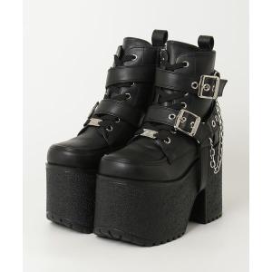 ブーツ ヨースケYOSUKEウィメンズ厚底ハトメバックルチェーンリングレースアップブーツ4460118 レディース