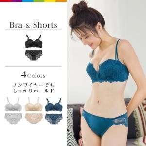ブラジャー ブラ ショーツ セット バストアップ レース レディース ノーワイヤー ワイヤーなし かわいい 上品 大人