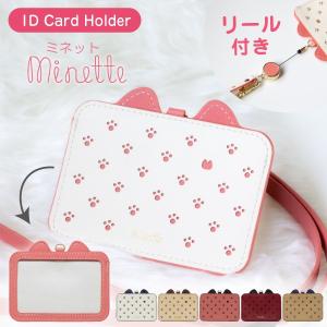 パスケース リール付き IDカードホルダー 定期入れ 社員証 かわいい おしゃれ レディース 猫 minette IDカードホルダー