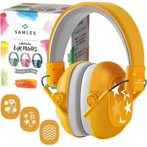 小児科医監修 軽さがもたらすつけ心地 と 必要な音は届く遮音性 イヤーマフ 子供 防音 聴覚過敏 ライブ 3種ステッカー付 (イエロー)
