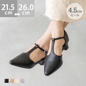 パンプス 痛くない 靴 レディース 走れる デザインヒール ミドルヒール 歩きやすい アーモンドトゥ Tストラップ 送料無料