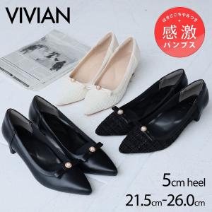 感激パンプス パンプス 痛くない リボン パール レディース 走れる 歩きやすい 柔らかい 結婚式 V3066AL VIVIAN ZOZO ポインテッドトゥ ツイード セレモニー