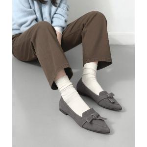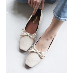 パンプス ポインテッドトゥ ステッチリボンデザイン フラットパンプス