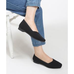 パンプス やわらかスムース素材のスクエアトゥ甲深バレエシューズ