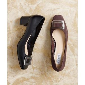 パンプス スクエアバックル ソフトポインテッドトゥパンプス