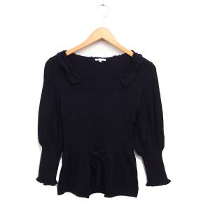 トゥービーシック TO BE CHIC リブ ニット セーター 7分袖 スクープドネック リボン フリル 無地 2 ブラック 黒 /FT40 レディース