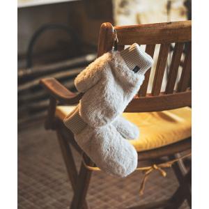 手袋 オリジナルフェイクファーボアストラップ付きミトン レディース