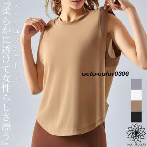 【新作】ヨガウェア トップス タンクトップ Tシャツ フィットネス ジム 透け感 ピラティス ヨガウエア エクササイズ 235 4色メッシュタンク