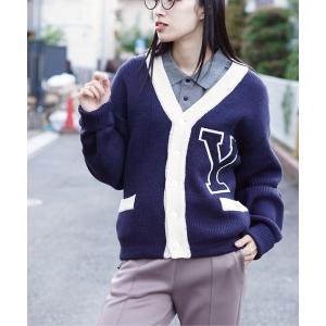 「C.E.L.STORE」 「bookstore」ニットカーディガン「YALEコラボ」 MEDIUM ネイビー メンズ