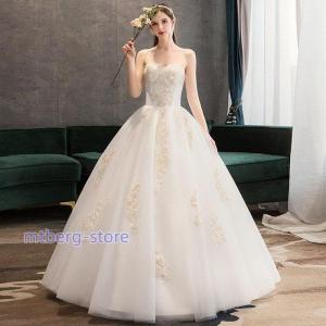 ウェディングドレス 二次会 結婚式 披露宴 ブライダル ロングドレス ビスチェ ベアトップ 花嫁 ウエディングドレス プリンセスライン オフホワイト 編み上げ