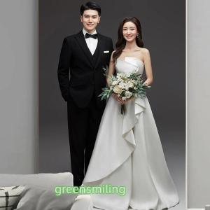 ウェディングドレス 二次会 結婚式 ブライダル ロングドレス サテン ベアトップ ビスチェ 前撮り 挙式 花嫁 記念撮影 ウエディングドレス シンプル Aライン