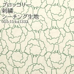 生地 布地 布 ブロッコリー 刺繍 シーチング生地 刺繍 野菜 緑黄色 ワンピース スカート チュニック ブラウス 服地 50cm単位