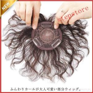 白髪隠し 部分ウィッグ ヘアピース 人毛100% カバー つむじ付き 薄毛 抜け毛 ウェーブ カール ミセス 母の日 黒髪 ダークブラ