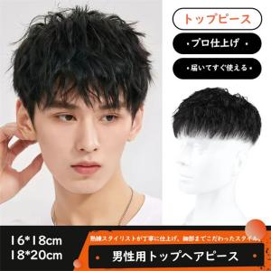 トップピース メンズ ウィッグ 人毛 短髪 巻き毛 ヘアピース 男性用 かつら 医療用 耐熱 自然 トップ用 付け毛 日常用 ビジネス 通勤