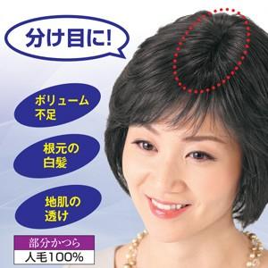 返品可能 人毛100%お手軽 分け目 ヘアピース 部分かつら ミセスウィッグ