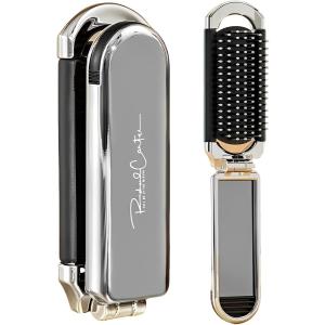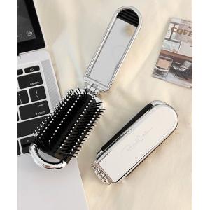 折りたたみブラシ 携帯用 ヘアブラシ コンパクト 折り畳み 持ち運び ミラー付き(シルバー)
